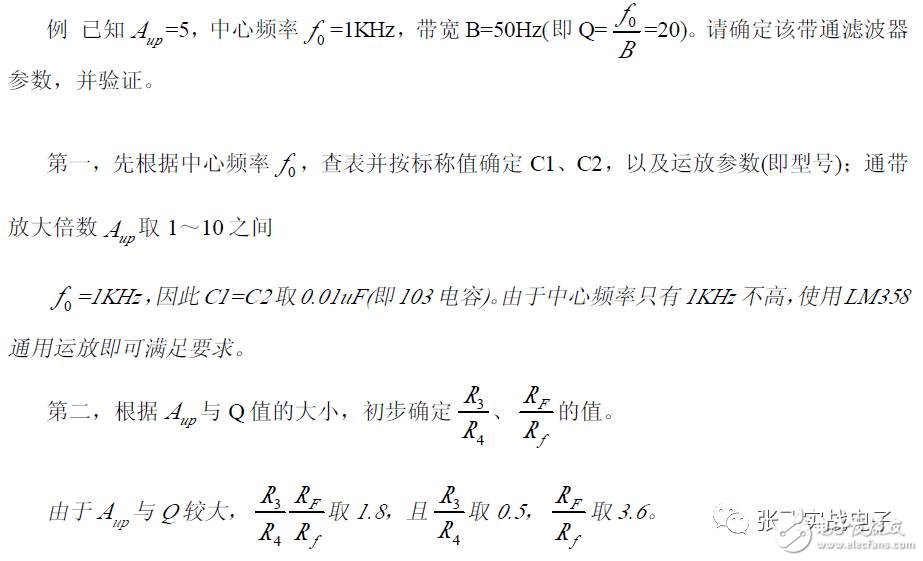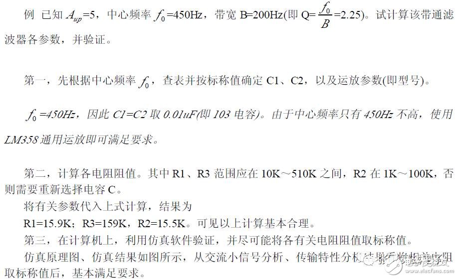 下面通过具体实例讲解这类带通滤波电路设计过程。