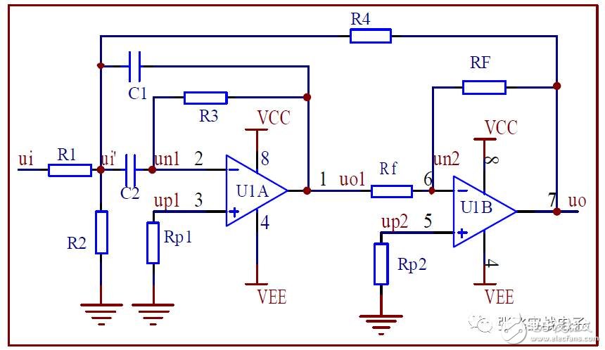 2单位增益二阶压控低通滤波器