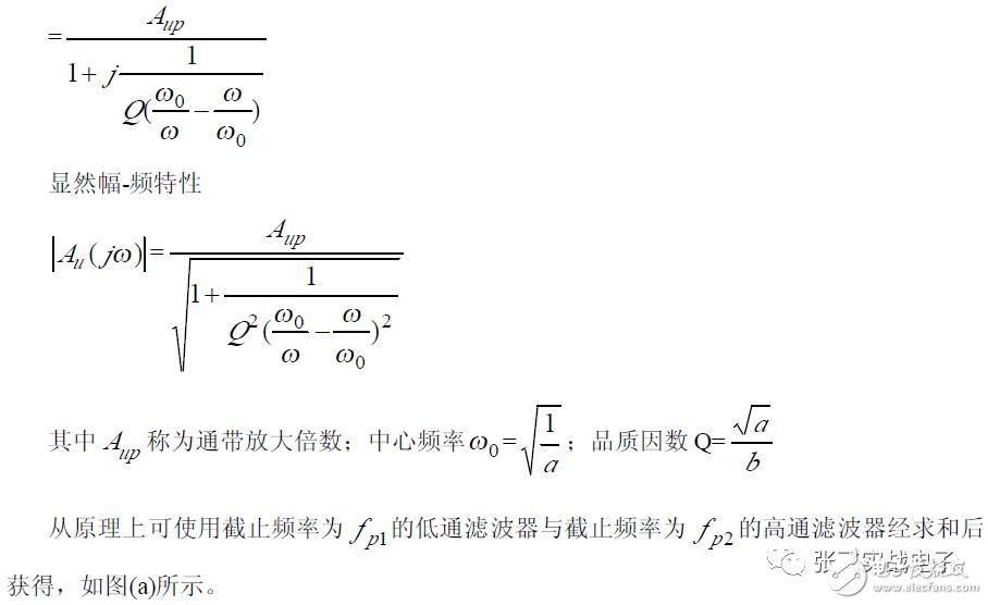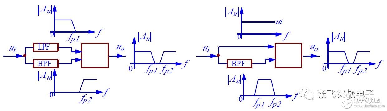 带通滤波器(BPF)的特征是通带内输出信号幅度与频率无关,而当f< fp1或f>fp2时输出信号很快衰减,幅频特性如图所示。