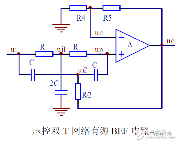 用求和运算BEF 实用电路多采用双T 型网络有源滤波器,如图所示。