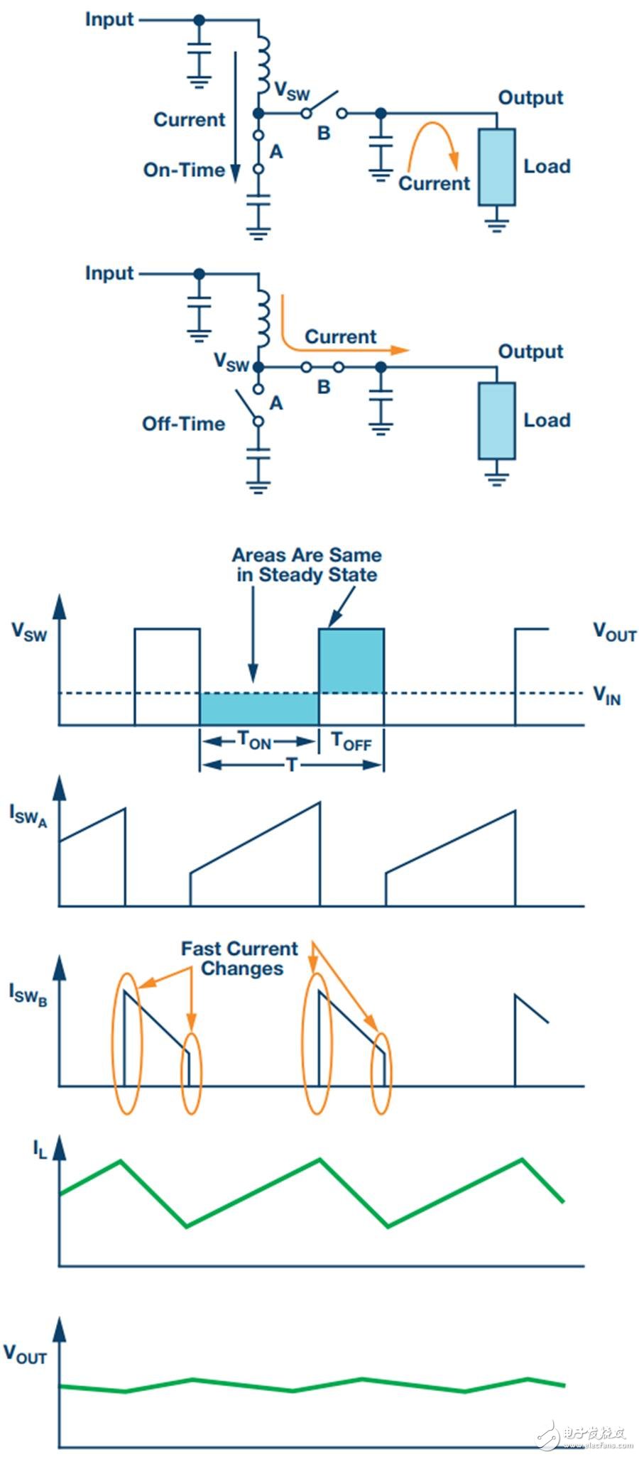 本文示例电路将采用升压转换器,但结果可以直接应用于任意DC-DC转换器。图1所示为升压转换器在恒定电流模式(CCM)下的基本波形。