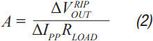 ΔIPP: 进入输出滤波器的峰峰值电流近似值(为方便计算,假定是正弦信号。数值取决于拓扑。对于降压转换器而言,它是电感中的峰峰值电流。对于升压转换器而言,它是开关B(通常是一个二极管)中的峰值电流。)