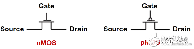 图为nMOS 晶体管和pMOS 晶体管的电路符号