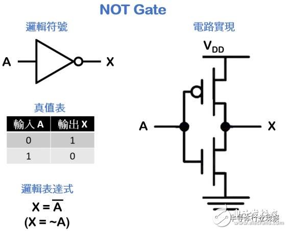从图中可看出NOT Gate 的工作原理很简单,只要用两个晶体管便能实现。
