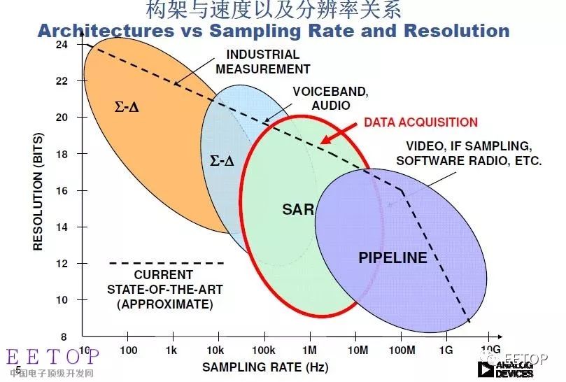 A:100K到1M的中等速度,12到16位的中等精度,综合性能较好,因此是目前应用最多的ADC架构之一。