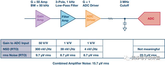 首先,如果系统中ADC驱动器之前的噪声源远大于ADC驱动器噪声,那么选择超低噪声ADC驱动器不会给系统带来任何好处。换言之,ADC驱动器应与系统其余部分相称。