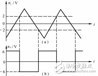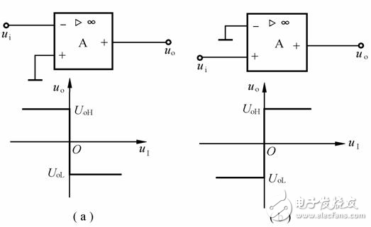 传输特性是比较器的输出电压uo与输入电压ui在平面直角坐标上的关系。