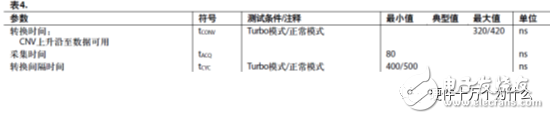 先看ADC的指标Tcycmin=500ns和Tacqmin=80ns,这是颗SAR型ADC,速度能上Mbps,还算挺快的。所以,它连续采样10次,所用时间也才10μs左右。