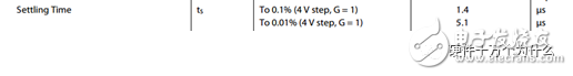 看一下运放的指标,当4V时,达到0.01%,时间为5.1μs,此时带来的波动误差是0.4mV,而在4V范围内,一个16位ADC的1LSB为0.06mV。误差可以吃掉6,7个码字,如果再加上分布电容和走线电阻,这个时间会进一步增加,使得后级稳定时间增长,从而导致误差变得更加的大。