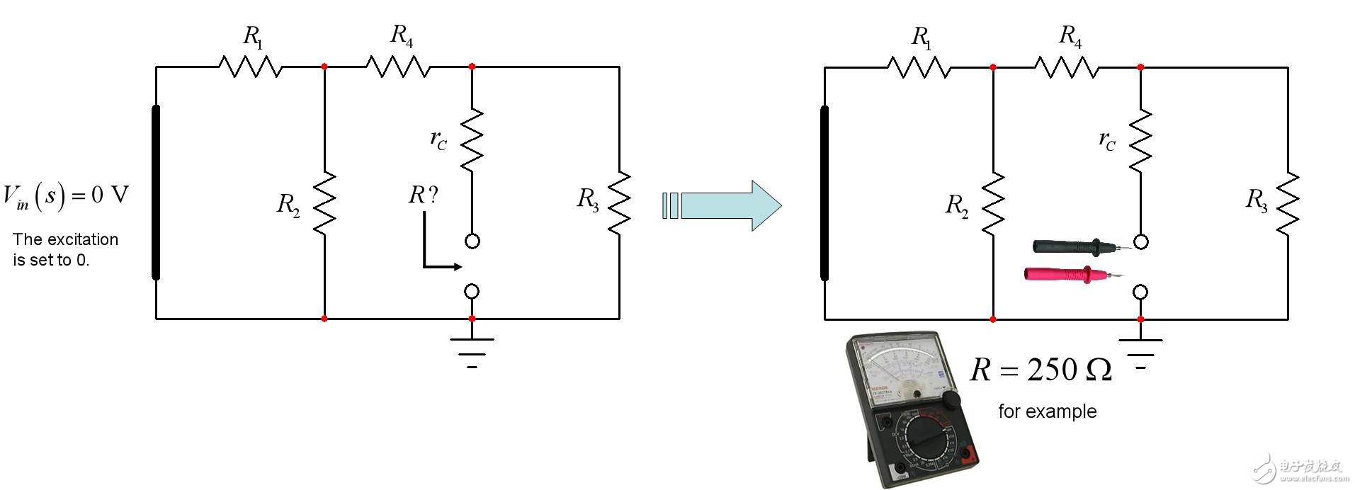 图3:确定电路的时间常数需要将励磁设置为0,并观察从电路中暂时移除的能量存储元件所提供的电阻。