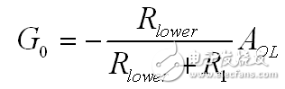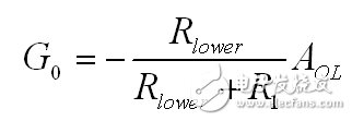 运算放大器提供的电压相当于开环增益 AOL 的 e 倍。反相引脚的电压与低边阻抗 Rlower 有关,在这种情况下,e 是个非零的值: