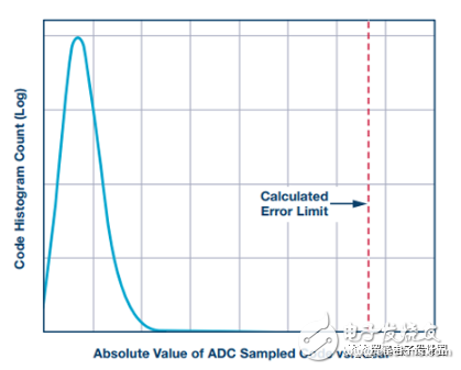 图6. 利用ADC样本与理想输出码相比较的长期直方图,我们可以检测任何超出计算限值的偏差。该直方图类似于泊松分布图。