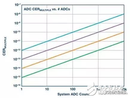 图7. 使用多个转换器的系统的CER正比于单个转换器的CER乘以ADC数量。