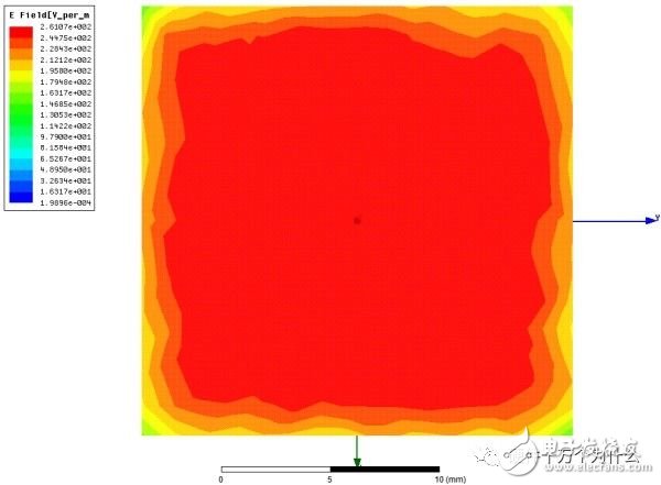 下图是利用ANSYS HFSS仿真的平行板电容器内部的电磁场的变化。