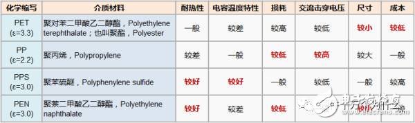 应用最多的薄膜电容是聚酯薄膜电容,比较便宜,由于其介电常数较高,尺寸可以做的较小;其次就是聚丙烯薄膜电容。其他材料还有聚四氟乙烯、聚苯乙烯、聚碳酸酯等等。