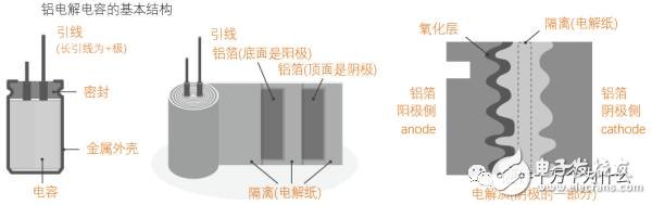 铝电解电容应该是使用最广泛的电解电容,最便宜,其基本结构如下图所示: