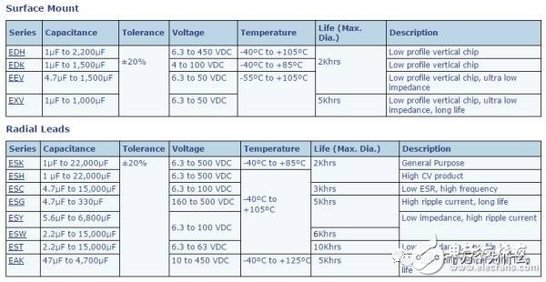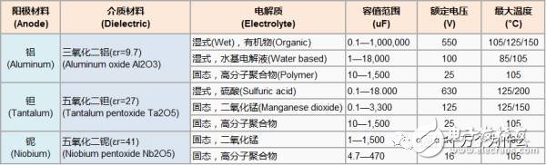 电解电容对比表,数据来源于维基百科,仅供参考。
