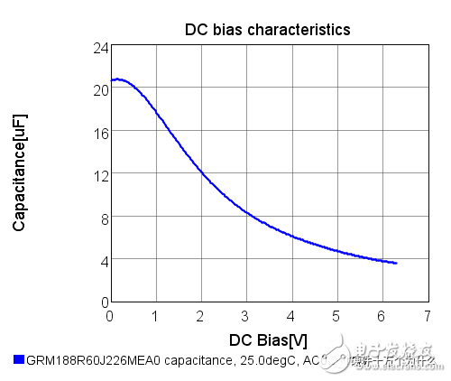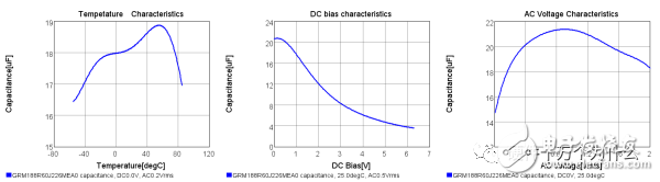 以Murata一款22uF、6.3V、X5R电容为例,相关特性曲线: