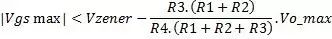 为使系统正常工作,必须仔细选择组件的值。主要目标是与低的|Vgs| 一起确保OP_A的输出不会饱和。