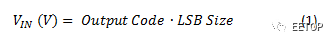 一般而言,ADC输入电压通过简单的关系与输出代码相关,如公式1所示: