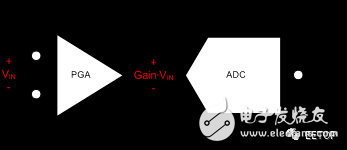 delta-sigma ADC通常在ADC输入之前集成可编程增益放大器(PGA)增益级;这就是公式3包括增益项的原因。通过在FSR计算中包括PGA增益,LSB大小计算也考虑了该增益。这意味着,当输出代码乘以LSB大小时,结果是PGA输入之前的输入基准电压(VIN),如图2所示,而不是放大的(输出基准)电压。注意,如果系统在ADC之前使用额外的信号调节,则该电路的效果可能需要额外的计算以确定系统的输入基准电压(在信号调节电路之前)。