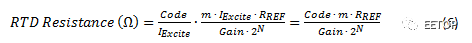 为了计算RTD电阻,RRTD,将测量电压VRTD除以激励电流IExcite,如公式4所示: