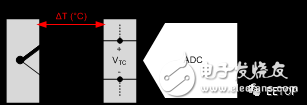 热电偶是一个温度传感器,可产生与两个接头之间的温差成正比的温度相关电压输出:感测/热接点和参考/冷接点。ADC测量该电压并将其转换为相对温度(温差),如图3所示。