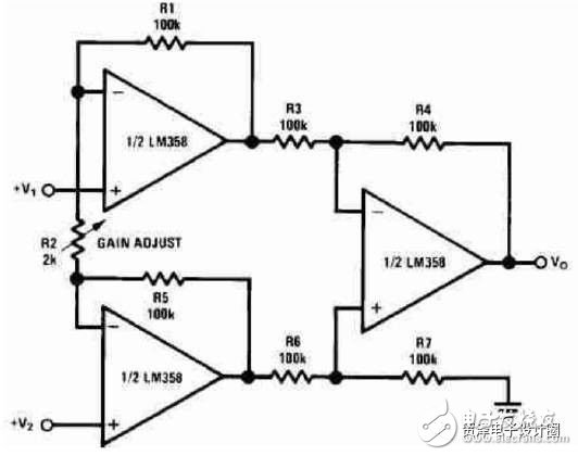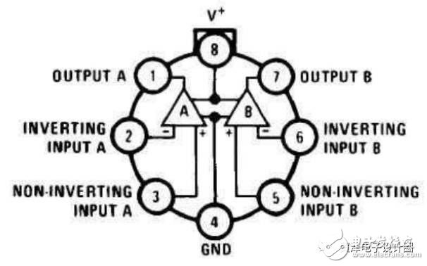 LM358内部包括有2个独立的、高增益、内部频率补偿的双运算放大器, 适合于电源电压范围很宽的单电源使用,也适用于双电源工作模式,在推荐的工作条件下,电源电流与电源电压无关。它的使用范围包括传感放大器、直流增益模组,音频放大器、工业控制、DC增益部件和其他所有可用单电源供电的使用运算放大器的场合。