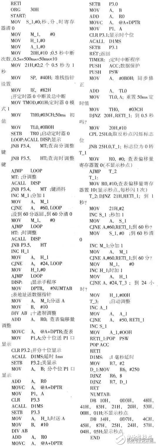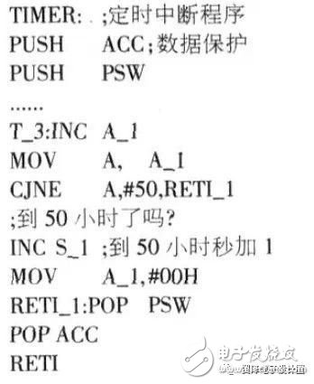 从上述程序可以看出,从中断人口到定时/计数器初值的低8位装入需要占用2+2+2=6个机器周期。所以,在编程时一般会把这6个机器周期加入定时/计数器的初值中。但是,从定时,计数器溢出中断请求到执行中断需要几个机器周期(3~8个机器周期)。就很难确定准确值,正是这一原因导致了电子时钟计时的不准。