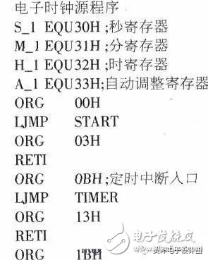 采用同步修正方案后,电子时钟的精度虽然提高了很多,但是由于晶振频率的偏差和一些其他未知因素的影响(同一块电路板、同样的程序换了一片单片机后,走时误差不一样,不知是何原因),时间长了仍然会有积累误差。为此,可采用自动调整方案。实际上是一种容错技术。其自动调整原理为:实测出误差Is所需的时间,然后每隔这样一段时间后就对秒进行加“1”或减“1”调整。例如:电子钟每过50小时就慢1秒,其自动调整程序如下: