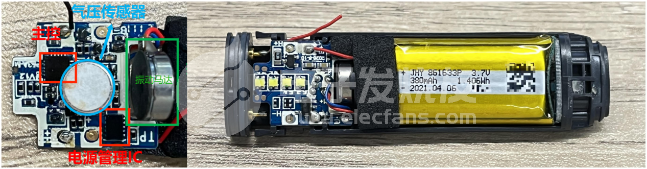 在提升用户使用体验方面,这款烟杆还使用到了1颗振动马达,在与烟弹连接时提供振动反馈,以及由4颗