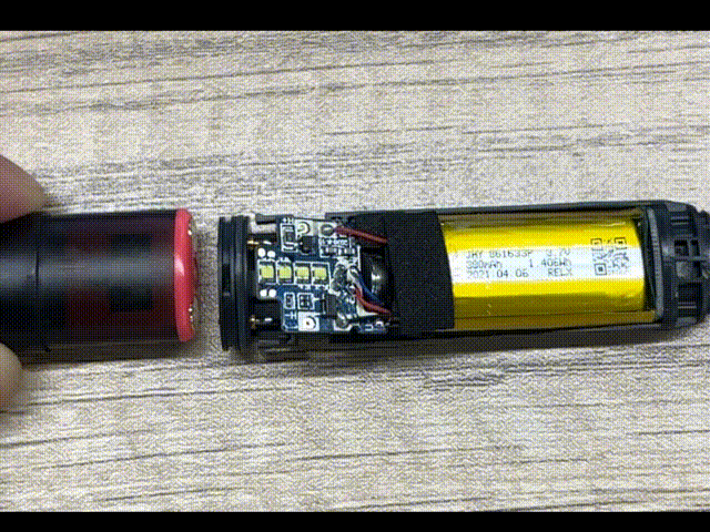 此款电子烟烟杆外部没有额外的凸起组件,并采用了机芯与外壳分离的设计,仅在机芯底部与外壳使用了少量的胶水进行粘连,在拆解过程中只需使用撬棒捅入烟杆底部充电插口,即可顶出烟杆机芯。在使用撬棒顶出烟杆的过程中,不建议使用金属或尖锐的物体,避免对烟杆的充电尾插造成不可逆的损坏。