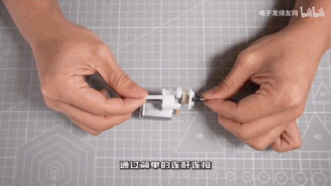 这主要得益于一个巧妙的传动轴设计,通过简单的连杆连接,即使电机只朝单一方向的转动,传动轴依旧能实现往复式的转动。
