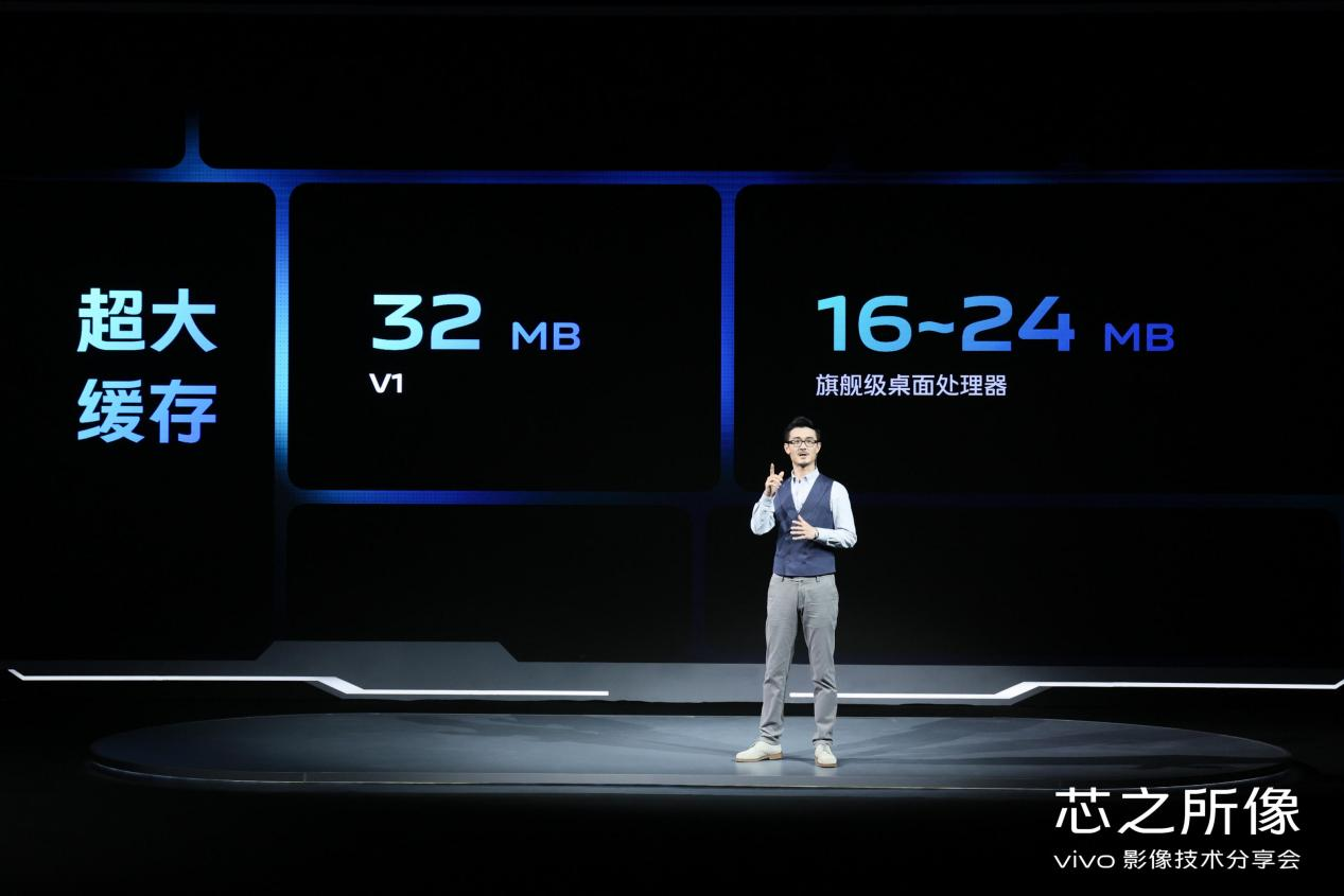 为了让同期处理能力最大化,VIVO创新优化了数据在内部的储存架构,和高速读写电路。做到了等效32兆的超大全片上缓存。片上高速缓存虽然贵但可支撑的计算密度和数据量更大。目前旗舰级桌面电脑处理器的缓存是16到24兆。
