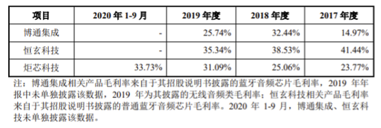科技相比,炬芯科技在2017年、2018年的毛利率均低于这两家公司,但在司 2019 年,炬芯科技自主开发的蓝牙音频 SoC 芯片量产销售,蓝牙音频 SoC 芯片系列毛利率随之大幅提升,从而缩小了与恒玄科技同类产品的差距。