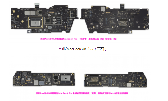 苹果发布Arm架构的M1处理器,在业界是一件颠覆性的事情。这次iFixit拆解了M1处理器和Intel处理器的MacBook Air和Pro,比较了他们的相似和不同之处。