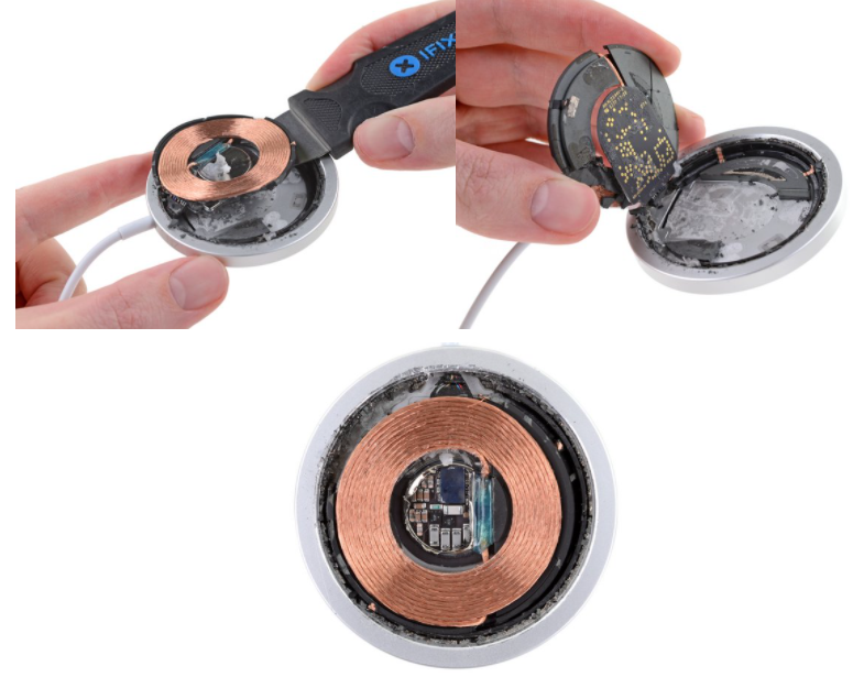 这可以与Apple为Apple Watch制造的其它感应式充电座进行有趣的比较。你可以在查看这些内部的详细分类。