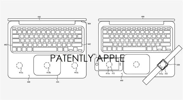 早在 2018 年的时候,苹果就曝光过一个专利。 用户可以将 iPhone 和 Apple Watch 等支持无线充电的设备放于 MacBook 的掌托之处,让 MacBook 为他们进行充电。