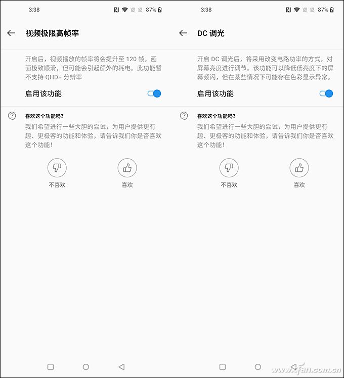 视频极限帧数可以挖掘出120Hz屏幕所有潜力,而DC调光功能则可以解决AMOLED低亮度下屏闪的问题