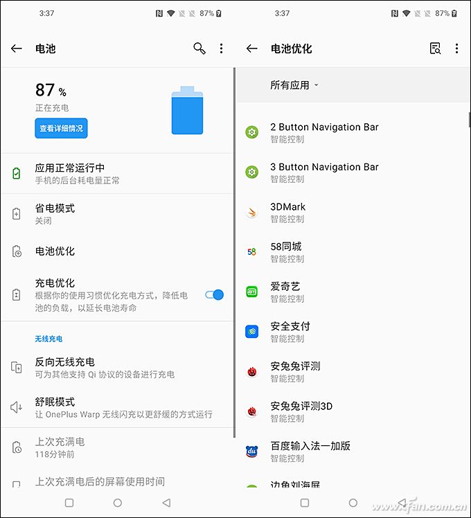 为了保证长时间持握手机玩游戏不酸手,一加 8 Pro将重量控制到了200g以内,而且并没因此牺牲电池,依旧配备了4510mAh容量的电芯,在系统层面也引入了更加智能的省电管理机制,为良好的续航表现奠定了基础。
