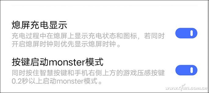 iQOO 3延续了家族前辈备受好评的Monster Touch压感按键,同时按AI键和右上角的压感按键还能激活Monster模式整机最高功率运行,绝不为性能妥协,游戏体验更加顺畅。