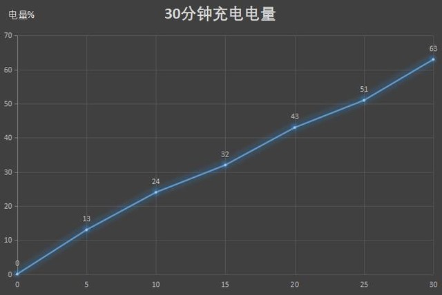 实测30分钟充电,vivo Z6的电量从0充到了63%。vivo 44W Super FlashCharge确实能够大幅度提升用户的使用习惯,而在44W快充的加持下,vivo Z6充满电量仅需65分钟。