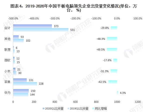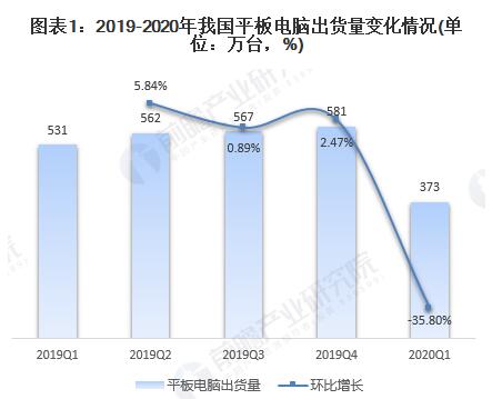 2020年第一季度,我国平板电脑出货量为373万台,环比下降35.80%,较2019年同期下滑29.76%。