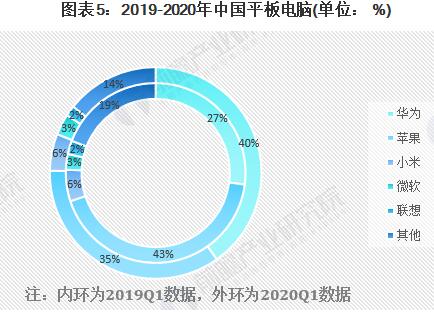 我国平板电脑市场前五大厂商分别是华为、苹果、小米、微软与联想。2020年第一季度,大部分品牌厂商的平板电脑出货量都出现了较大程度的下滑,华为却一反常态,逆势增长,产品持续热销,在疫情冲击下仍实现了出货量4.3%。的增长。