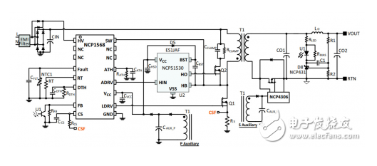 安森美半导体将NCP1568和NCP51530搭配,通过结合一个高能效的拓扑(ACF)和减小器件大小的高频工作,满足当前市场的需求。虽然这些优势是通过可靠的和已证实的硅基超级结FET实现的,但只要成熟,该方案也兼容GaN器件。