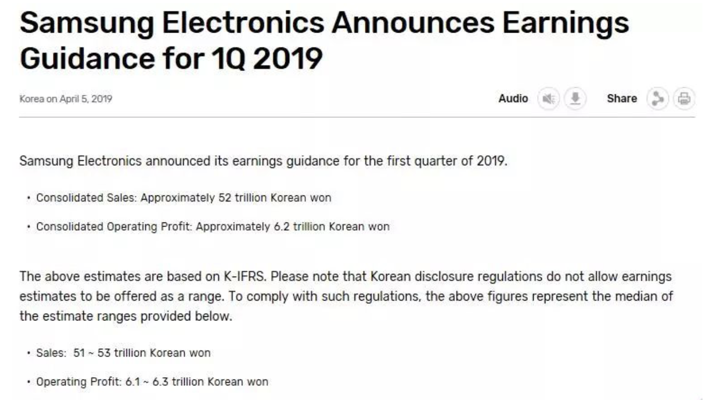 三星发布了2019年Q1初步财报预告,受需求淡季以及NAND Flash和
