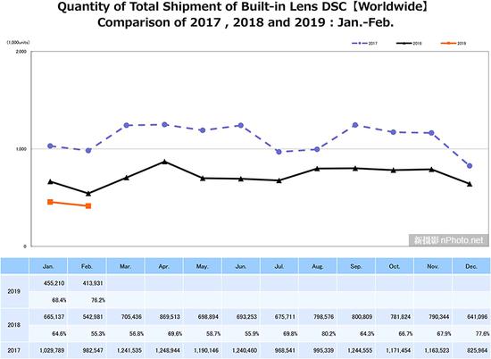 CIPA(日本相机与影像产品协会)公布了2019年2月份全球数码相机的出货量数据。数据显示,2月份的全球数码相机总出货量为935,148部,与去年同比减少30.3%,下滑幅度可谓异常迅猛。