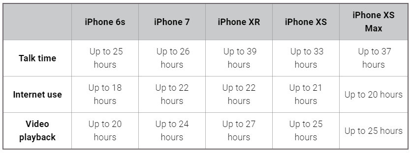 当与智能电池壳结合后,你的iPhone绝对能够坚持一整天的使用。在它支持的所有三款iPhone型号当中,通话时间和视频播放都会超过24小时。联网使用虽然达不到24小时,但起码iPhone XR已经非常接近这一标准了。