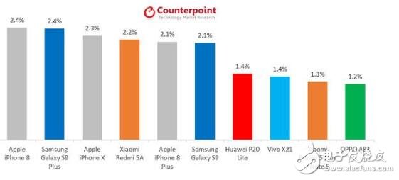 最新数据显示,苹果获得了智能手机行业的大部分利润,苹果取得这个成绩主要依靠的是旗舰机。5月份时Counterpoint Research发布的研究数据显示,在高端智能手机市场,苹果与三星并驾齐驱。今年4月,iPhone X的出货量曾落后于三星Galaxy S9 Plus,但目前已收复失地。