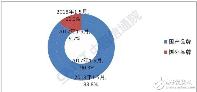 图4 2018年1-5月国内外品牌手机出货量构成